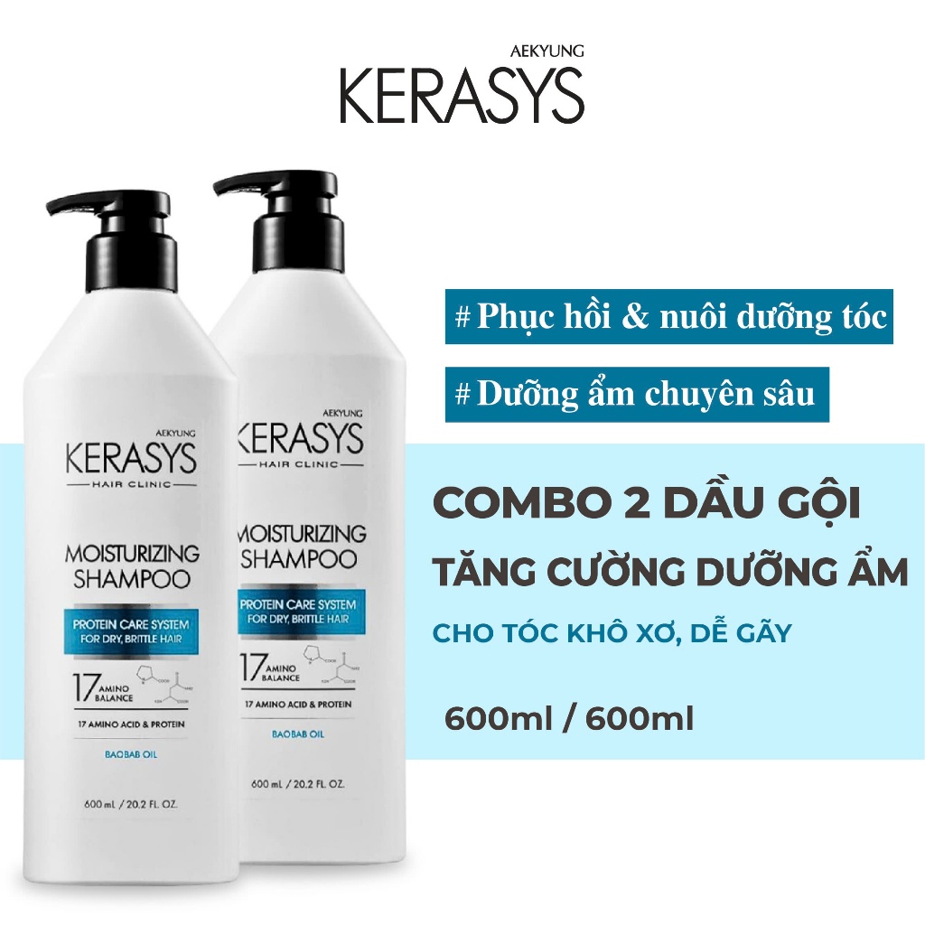 Cặp dầu gội xả Kerasys Moisturizing Hàn Quốc tăng cường dưỡng ẩm cho tóc khô xơ, dễ gãy 600ml