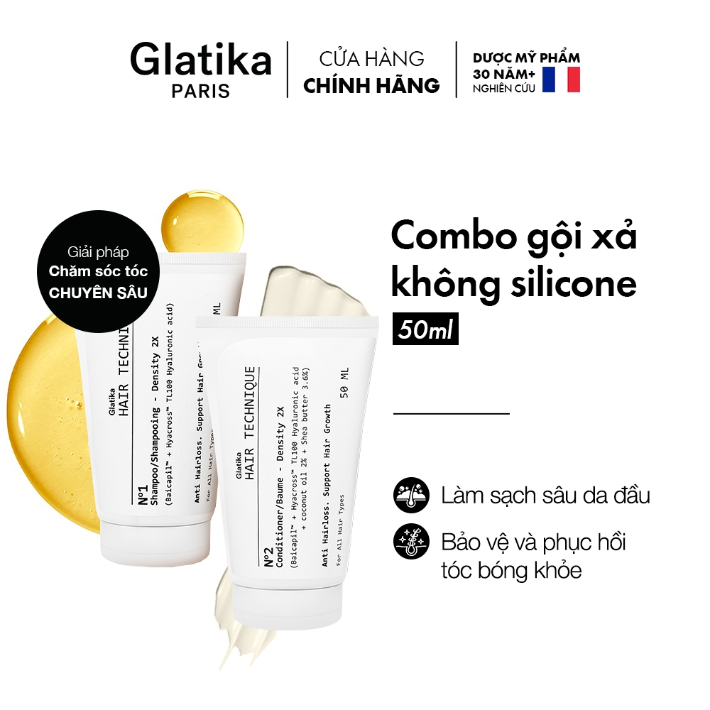 Combo dầu gội dầu xả Glatika hỗ trợ làm sạch sâu, giúp tóc chắc khỏe và bóng mượt tự nhiên