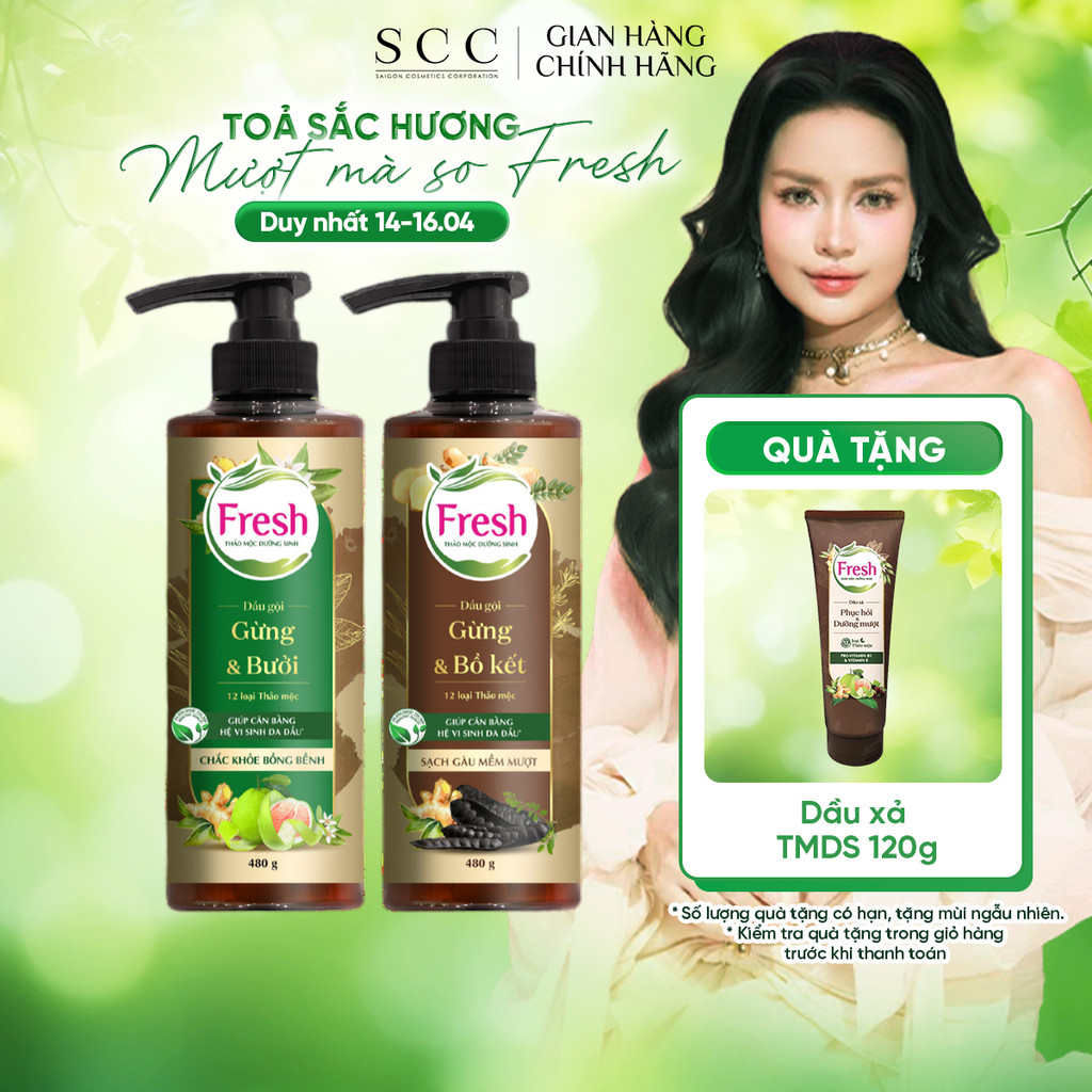 Dầu Gội FRESH Thảo Mộc Dưỡng Sinh 480g (Sạch Gàu Mềm Mượt / Chắc Khỏe Bồng Bềnh)