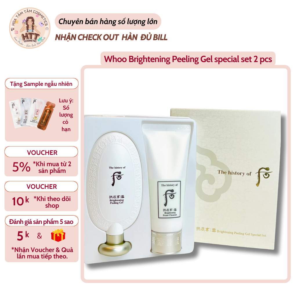 Bộ kem tẩy tế bào chết và sữa rửa mặt Woo Gongjinhyang Seol Brightening Peeling Gel Special Set2pcs