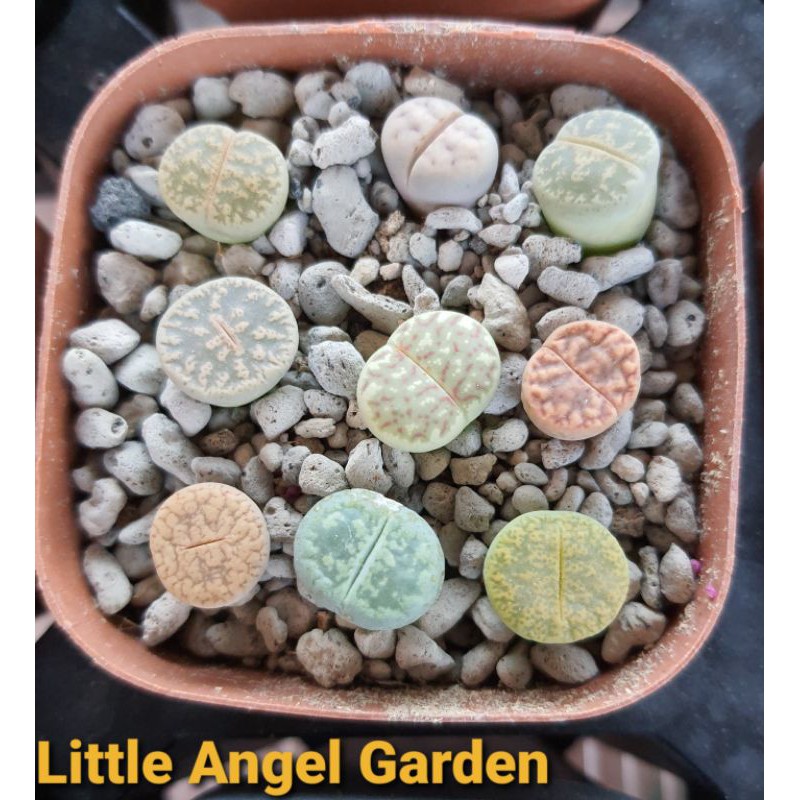 9 cây sen mông - lithops - thạch lan size 1cm - 1,2cm | Kèm chậu nhựa và đất trồng