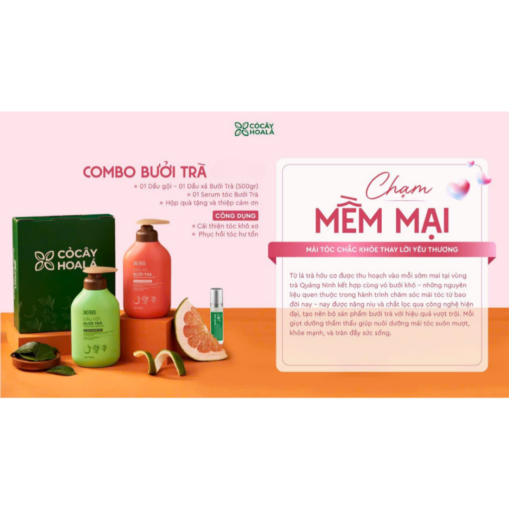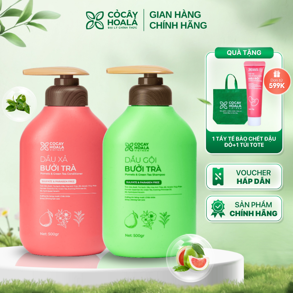 Combo dầu gội xả Bưởi Trà thiên nhiên phục hồi tóc hư tổn, dưỡng tóc chắc khỏe | COCAY HOALA