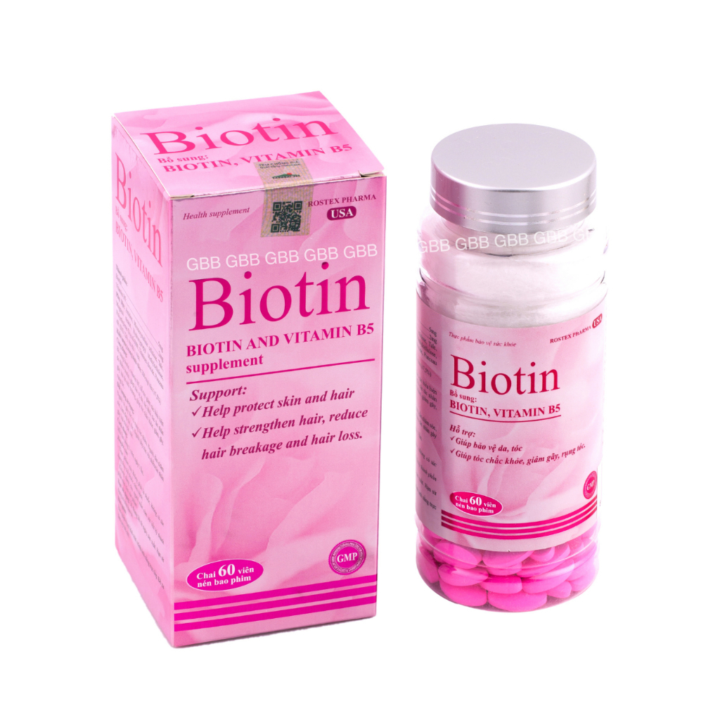 Viên uống Biotin bổ sung Biotin và Vitamin B5 giúp giảm rụng tóc, bảo vệ da, chắc móng (H 60 viên)
