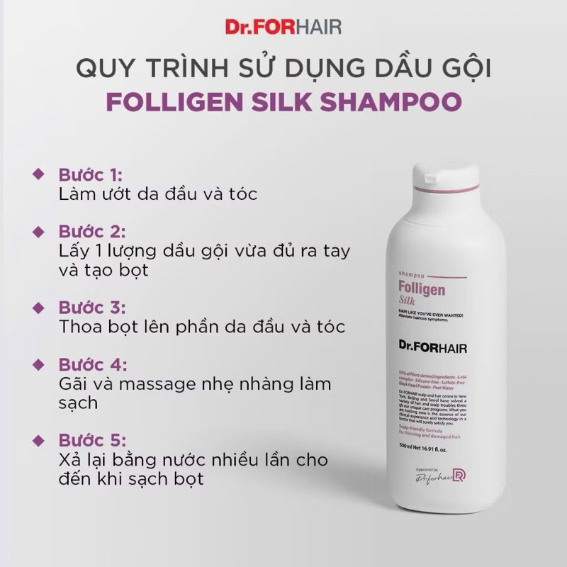 DẦU GỘI LỤA HƯƠNG HOA SIÊU MƯỢT DÀNH CHO TÓC MỎNG - KHÔ XƠ - HƯ TỔN DR.FORHAIR SILK SHAMPOO