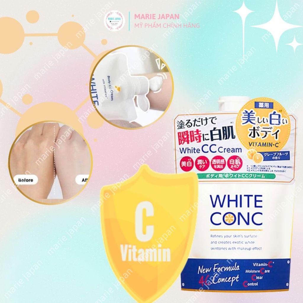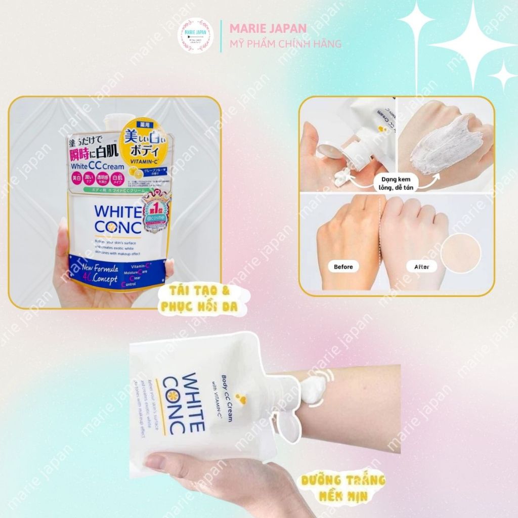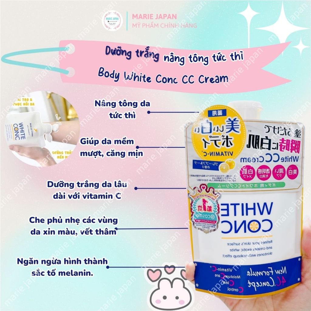 Kem Dưỡng Trắng Nâng Tông Toàn Thân White Conc CC Cream Mịn Mượt Tươi Sáng Tức Thì Nhật Bản Túi 200g