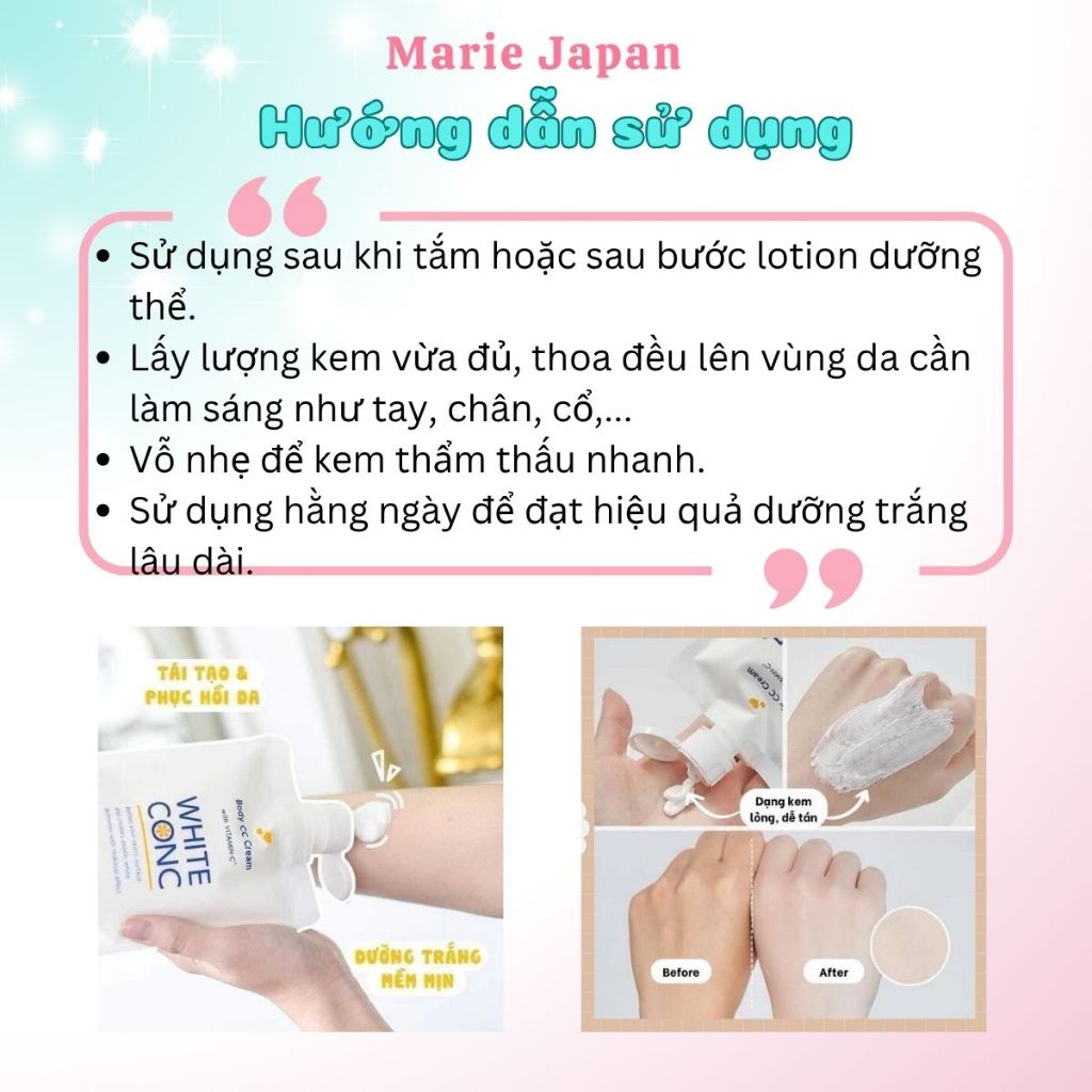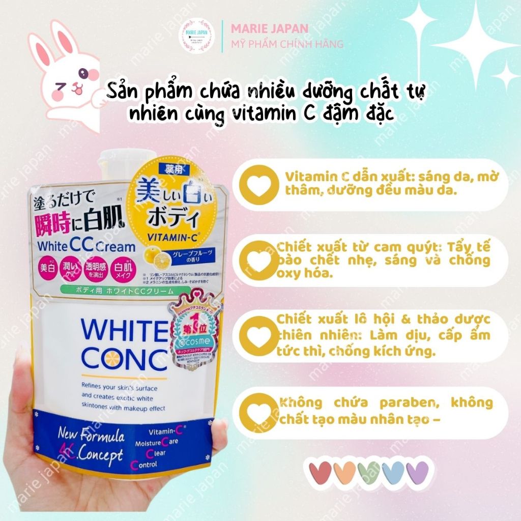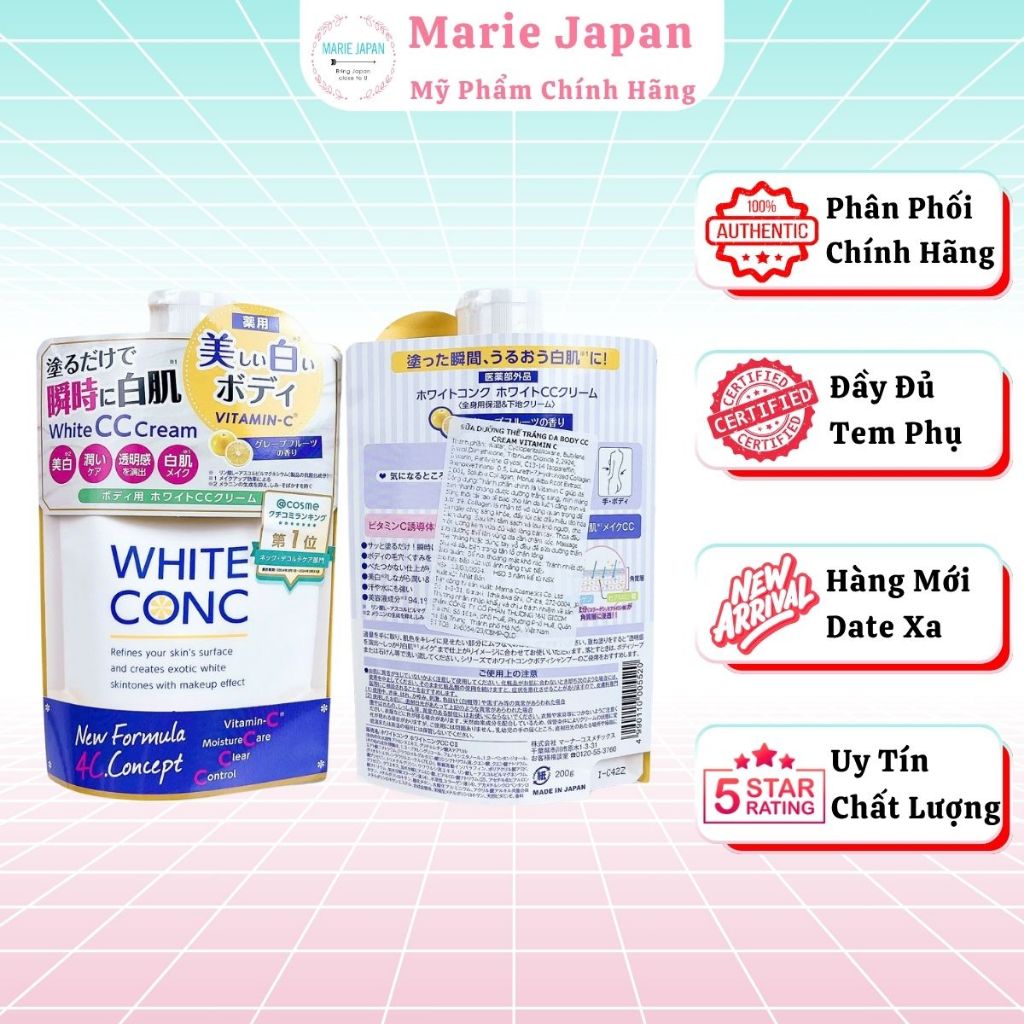 Kem Dưỡng Trắng Nâng Tông Toàn Thân White Conc CC Cream Mịn Mượt Tươi Sáng Tức Thì Nhật Bản Túi 200g