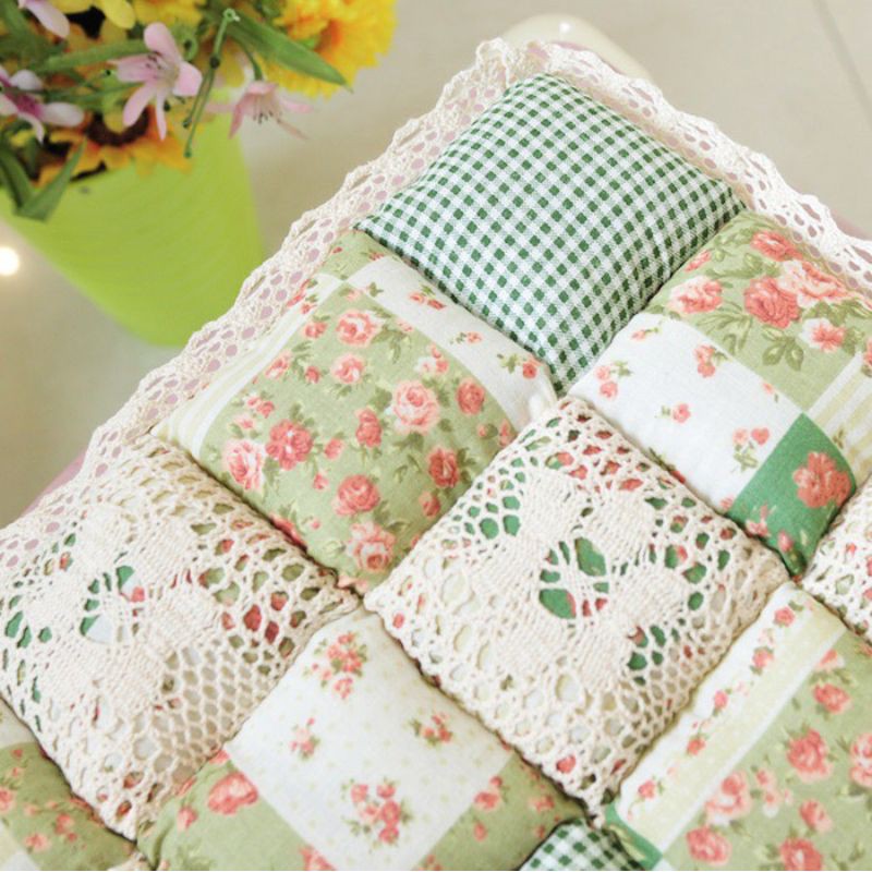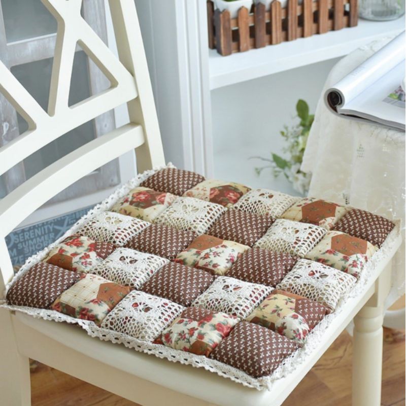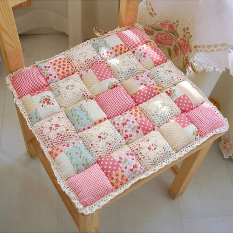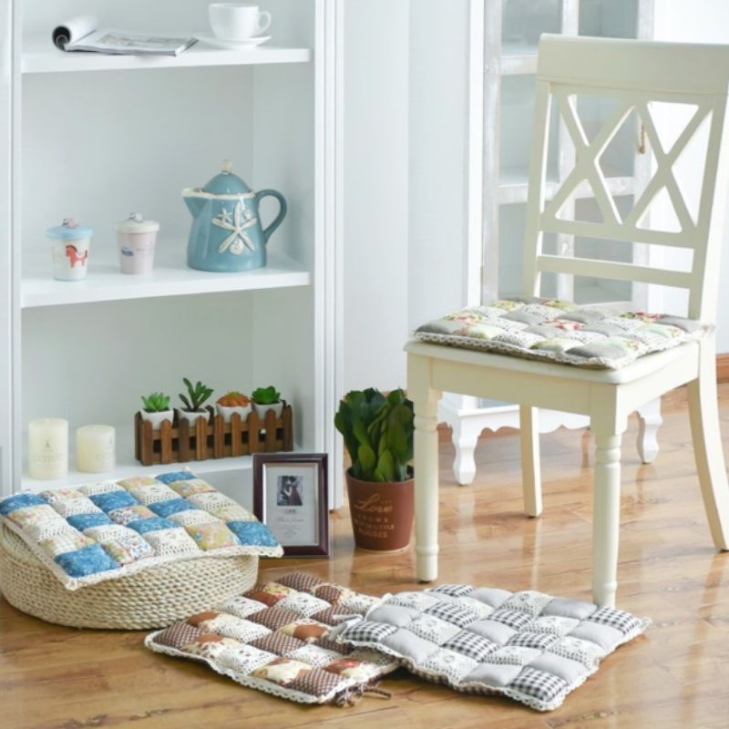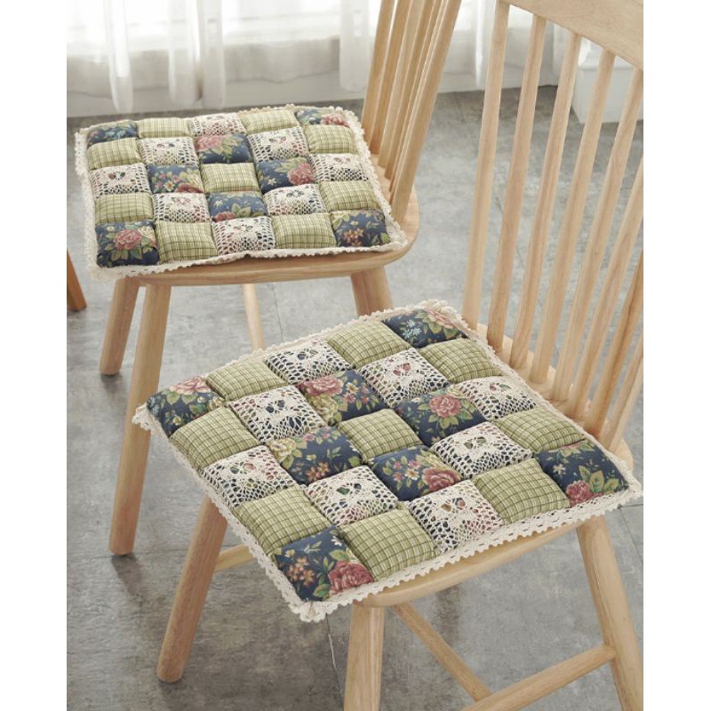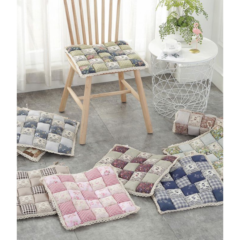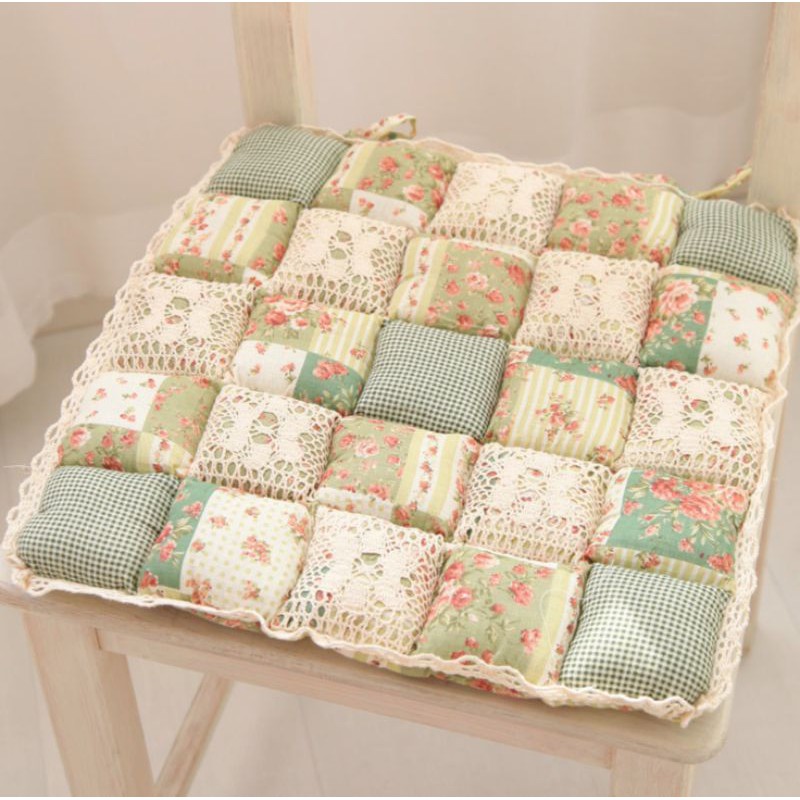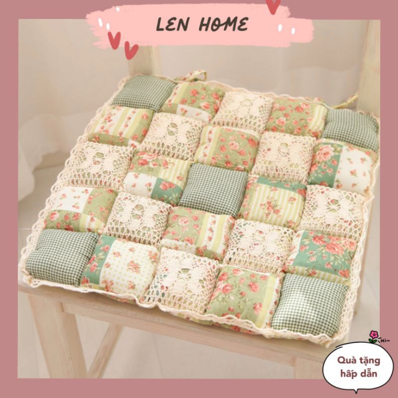 A02/Đệm MỎNG lót ghế hoa nhí retro phối vải ren phòng cách Nhật Decor trang trí nhà bàn học bếp sàn gỗ cotton chần bông