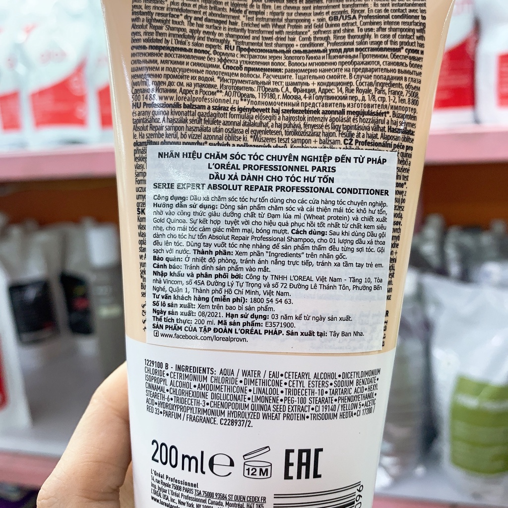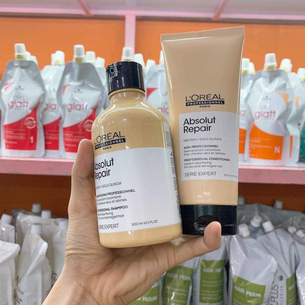 Dầu gội xả phục hồi tóc Loreal Serie Expert Lipidium Absolut Repair Instant resurfacing 200ml/300ml/500ml CH