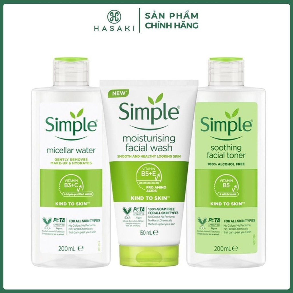 Combo Simple Tẩy Trang 200ml + Sữa Rửa Mặt 150ml + Toner 200ml Sạch Sâu Hasaki Sản Phẩm Chính Hãng