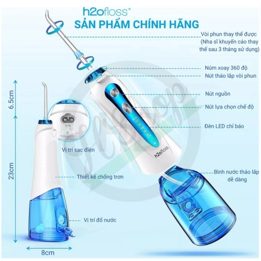 Máy Tăm Nước H2ofloss HF-9P / HF-6 / HF-10 mini Tăm Nước Cầm Tay Dụng cụ vệ sinh răng miệng (chính hãng)