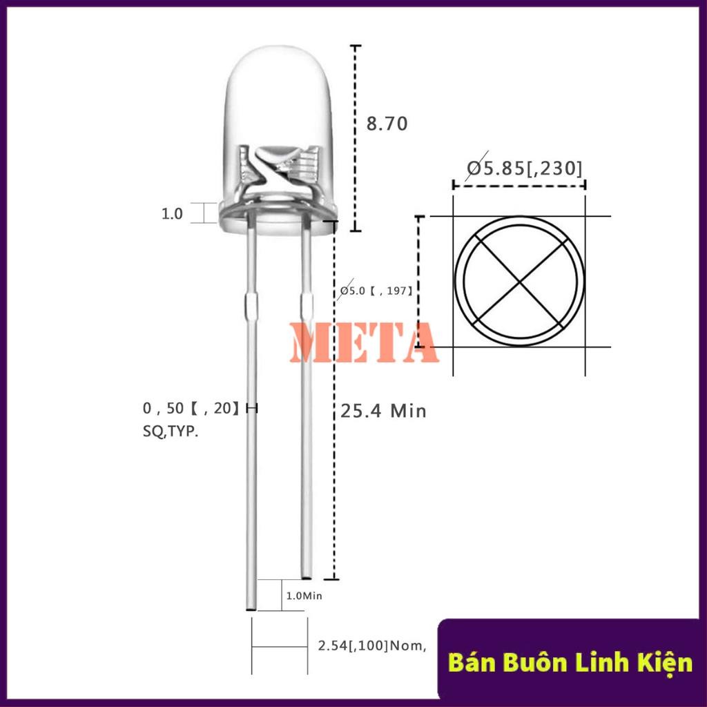 [Gói 50 Con] Led Siêu Sáng Phi 5 Màu Đỏ, Xanh Lá, Xanh Dương, Vàng, Trắng 1.5-3V - Led Siêu Sáng 5mm, Led 5mm, Led F5