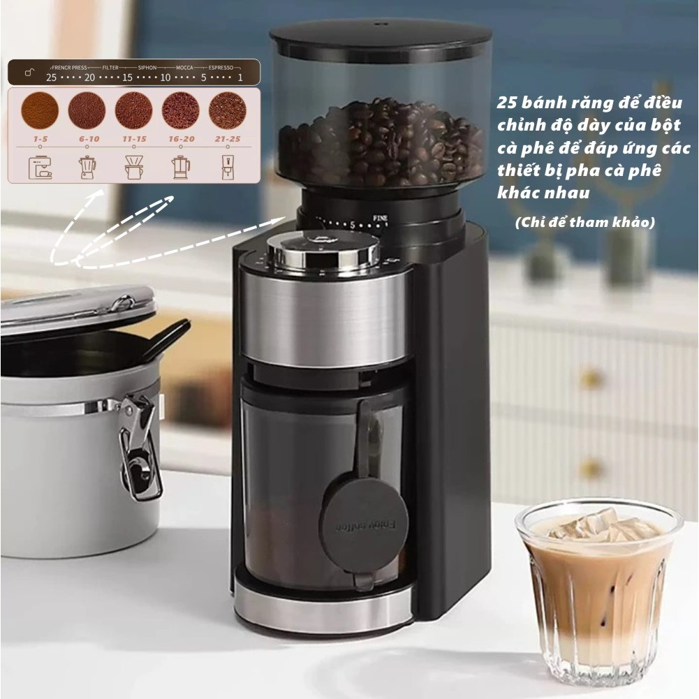 Máy Xay Cà Phê HB583,Xay Hạt Cafe Pha Espresso,tích hợp 25 chế độ xay, 2 in 1,thích hợp 51mm tay cầm