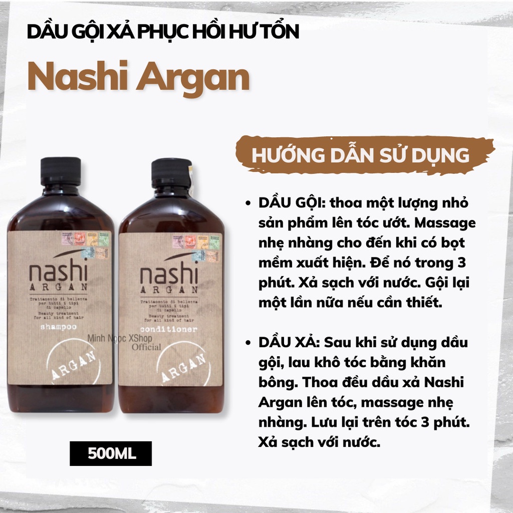 Dầu gội xả phục hồi hư tổn Nashi Argan 500ML