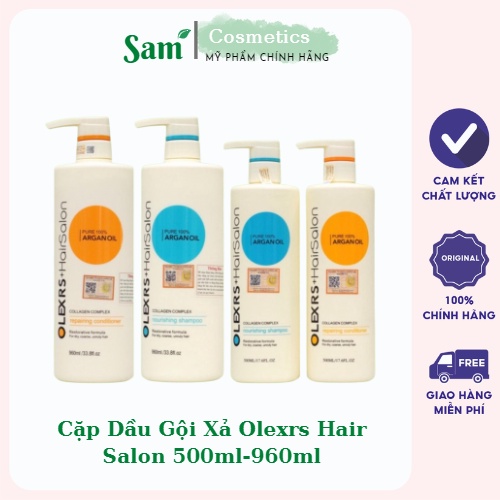 Cặp Dầu Gội Xả Olexrs Argan Oil Collagen Hair Salon 960ml 500ml, phục hồi tóc hư tổn, giảm gẫy dụng