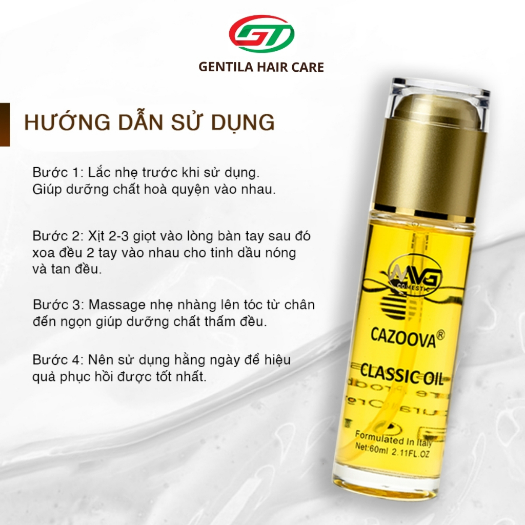 Serum dưỡng tóc bóng mượt giữ nếp dành cho tóc khô xơ, không bết dính Cazoova classic 60ml