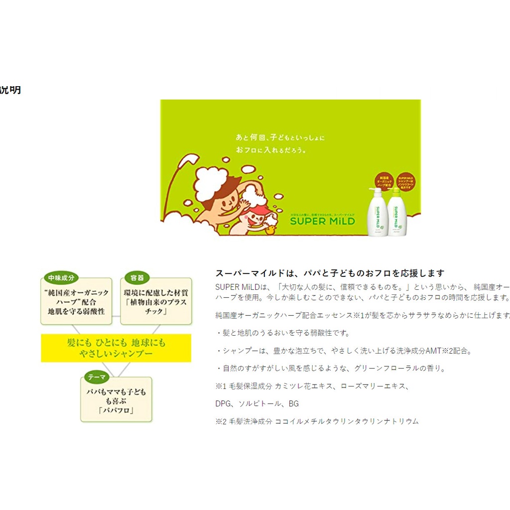 Dầu gội Shiseiso Super Mild Nhật Bản, chiết xuất hoa cúc La Mã, chiết xuất hương thảo, làm cho tóc mềm mượt, nhẹ nhàng