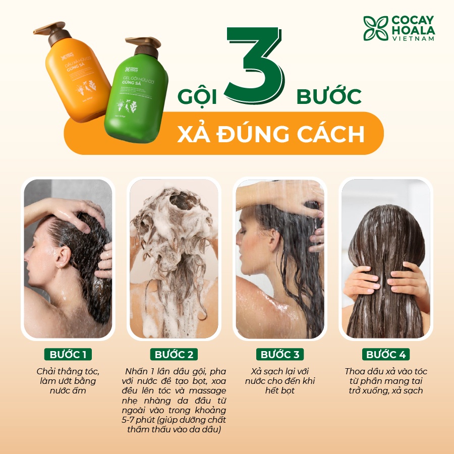 Dầu gội gừng sả hữu cơ Cocayhoala ngăn dầu bết tóc và giảm gàu ngứa Dung Tích 500g - Mít Natural