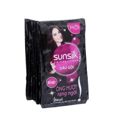 Combo 12 dây Dầu gội Sunsilk bồ kết óng mượt rạng ngời gói 6g - dây 10 gói - dầu gội đầu chăm sóc nuôi dưỡng tóc (Đen)