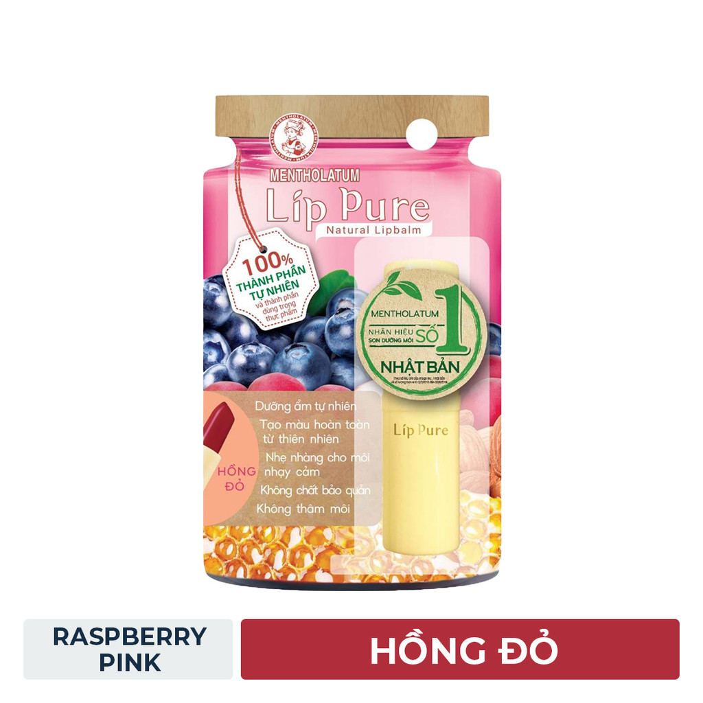Son Dưỡng Có Màu Lip Pure Màu Hồng Đỏ Natural Lipbalm #Raspberry Pink 3.8g Hasaki Sản Phẩm Chính Hãng