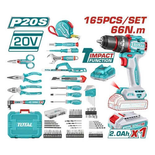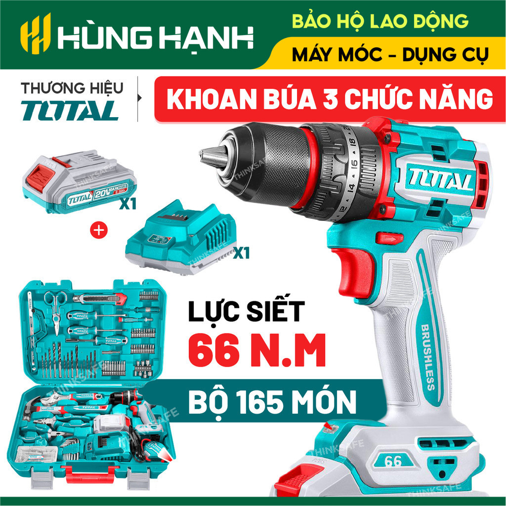 Bộ Máy Khoan Búa Pin 20V, Lực siết 66Nm, Không Chổi Than TOTAL THKTHP11652, Gồm 165 Món Đa Năng - Hùng Hạnh