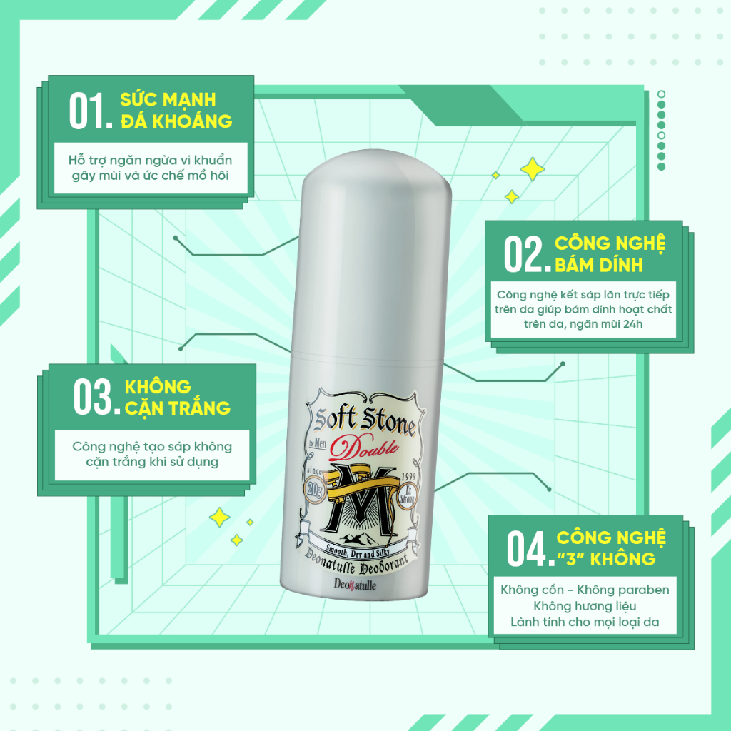 Lăn khử mùi đá khoáng dạng sáp Deonatulle dành cho nam Soft Stone Double Non-menthol for Men 20g