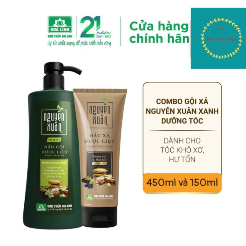 Bộ sản phẩm dầu gội 450ml và dầu xả 150ml Nguyên Xuân Xanh dưỡng tóc dành cho tóc khô xơ, hư tổn
