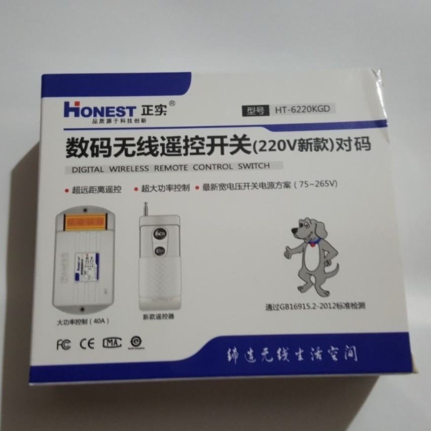 Công tắc điều khiển từ xa 1km công suất lớn Honest HT-6220KGD 40A-220v có học lệnh