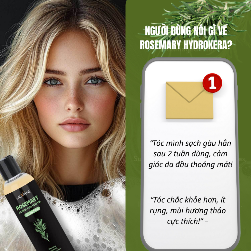 Dầu Gội Hương Thảo ROSEMARY HYDROKERA dành cho tóc khô xơ Sạch Sâu Gàu, Phục Hồi Nang Tóc- 200ml