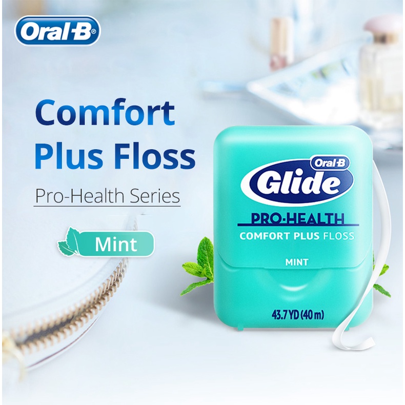 Oral B glide comfort plus floss ultra soft gum care dental flosser hương bạc hà hương bạc hà hương vị thoải mái rộng phẳng làm sạch sâu chỉ nha khoa 40m