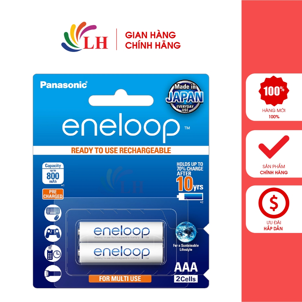 Pin sạc Panasonic Eneloop AAA 800mAh BK-4MCCE/2BT (2 viên/10 viên) - Hàng chính hãng