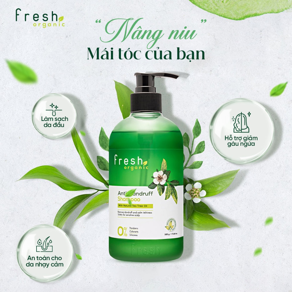 Dầu Gội FRESH ORGANIC Tinh Chất Tràm Giảm Gàu (Anti Dandruff) / Tinh Chất Hương Thảo Giảm Gãy Rụng (Volumizing) 500g