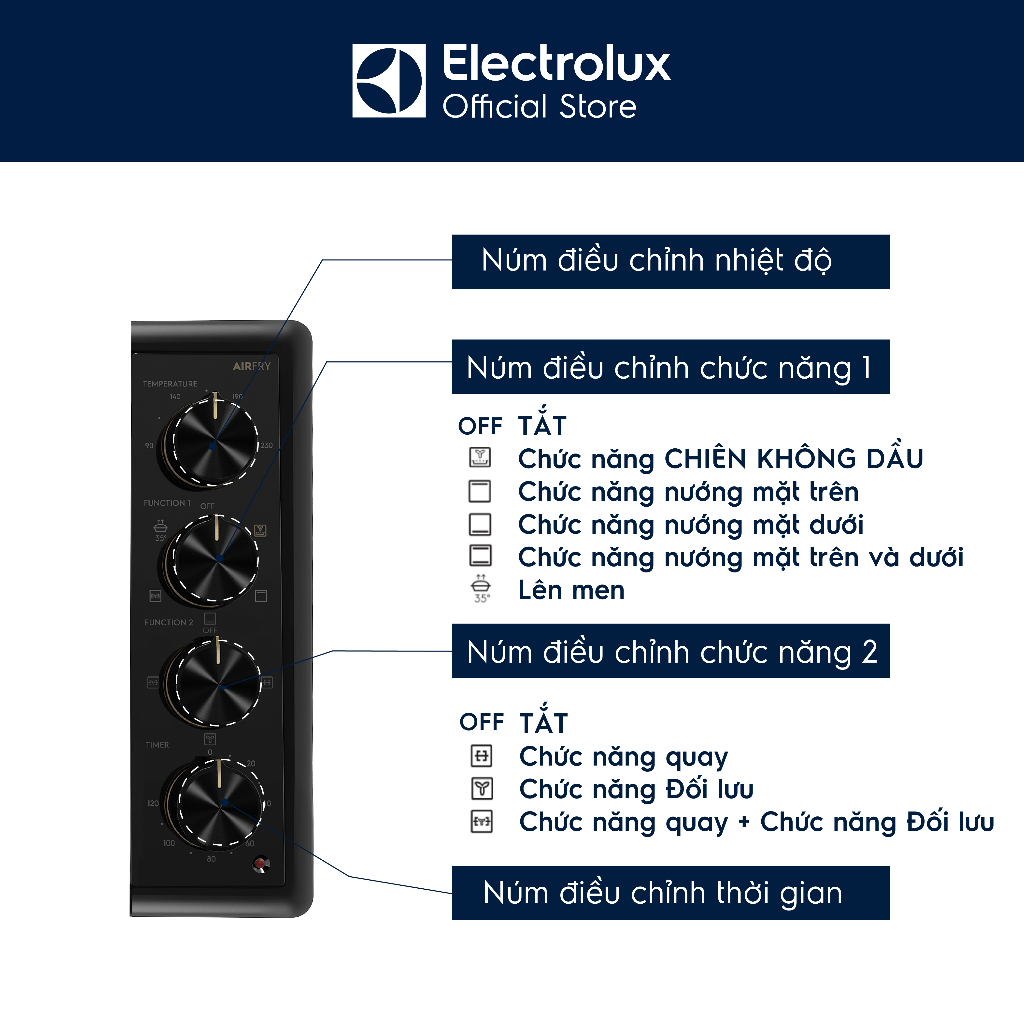 Lò nướng kết hợp chiên không dầu Electrolux UltimateTaste 700 40L - EOT4022XFG - Nướng, chiên không dầu, lên men
