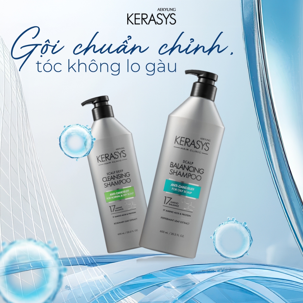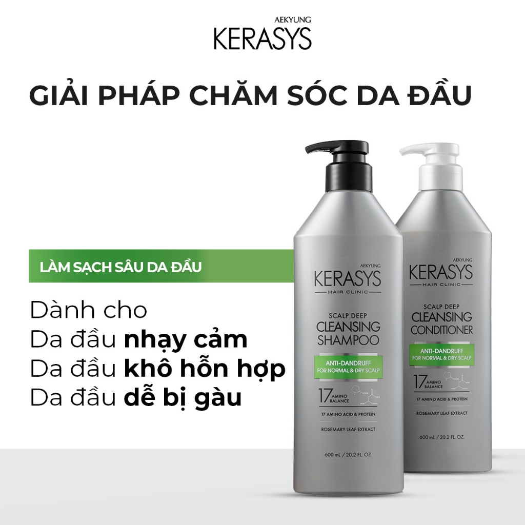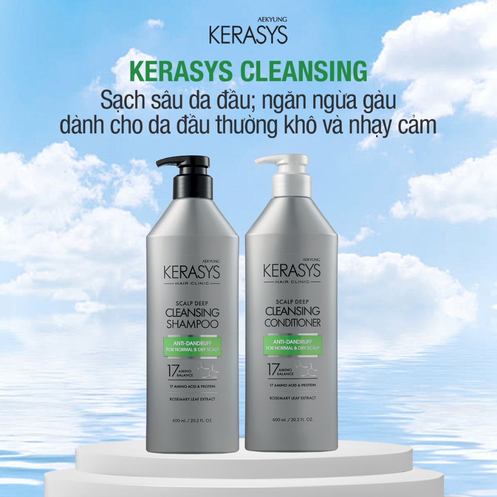 Cặp dầu gội xả Hàn Quốc sạch sâu, ngăn ngừa gàu cho da đầu khô Kerasys Clinic Deep Cleansing 600mlx2