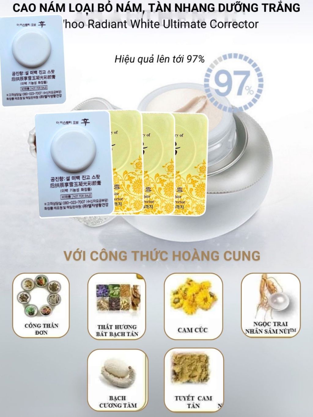10 Vỉ Cao Nám Whoo Loại bỏ NÁM, Sạm, Tàn Nhang giúp Trắng Sáng Da Sample Whoo Radiant White Ultimate