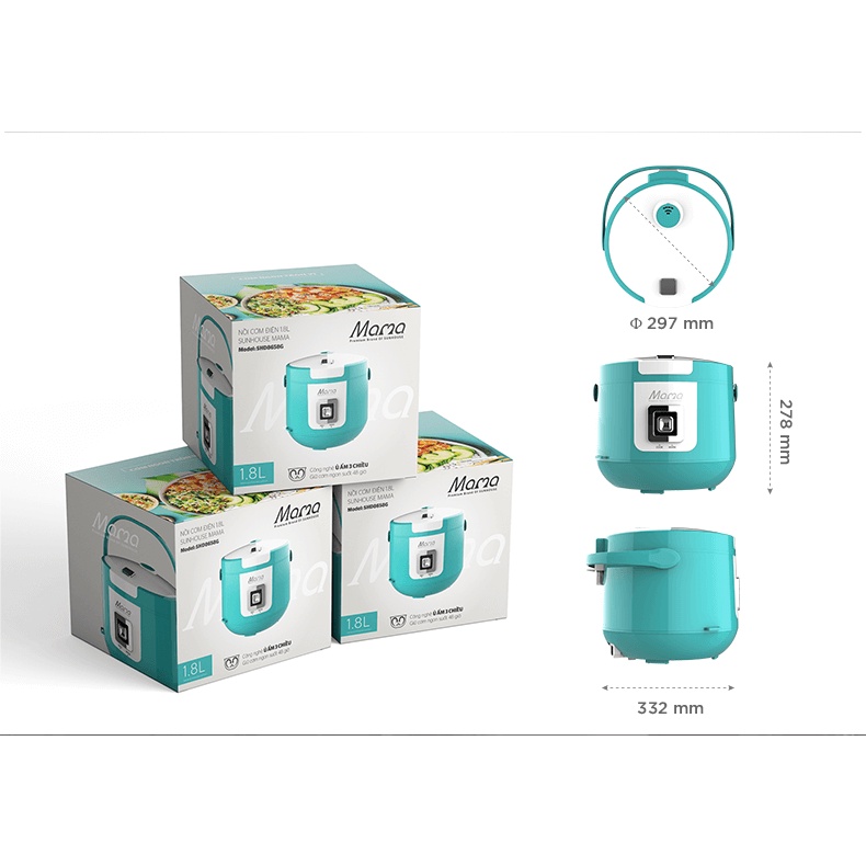 Nồi Cơm Điện SUNHOUSE MAMA 8658P Công Nghệ Nấu 3D Ủ Ấm 3 Chiều Tỏa Nhiệt Đều Nấu Cơm Ngon Chính Hãng
