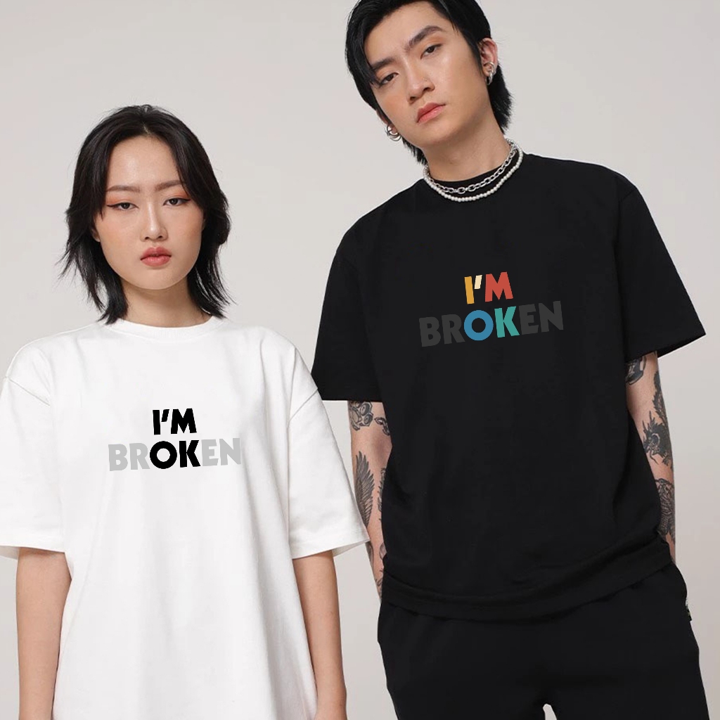 Áo Thun In Chữ Hài Hước - I'm Oke - Broken - Cho Nam Nữ Form Rộng 100% Cotton 230gsm