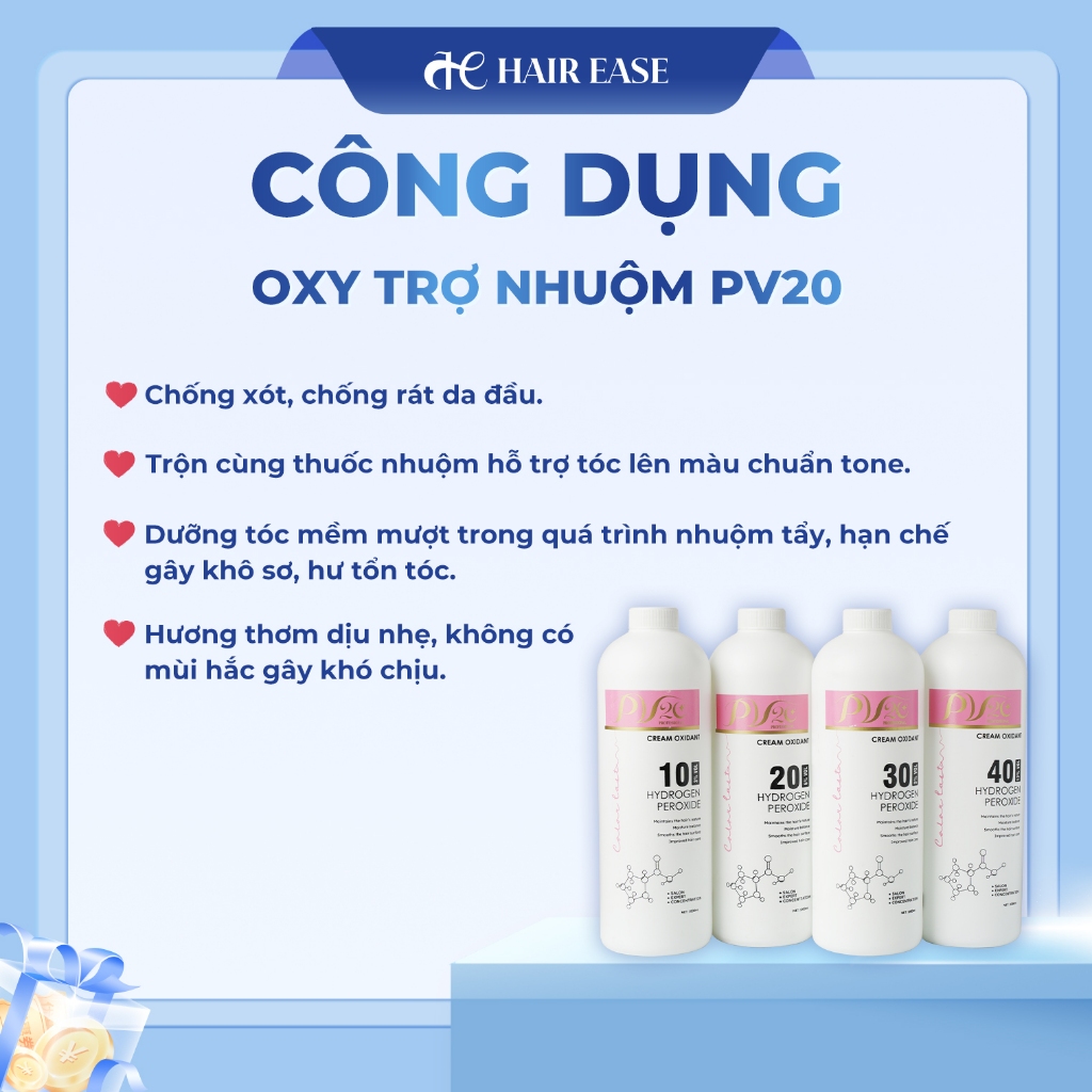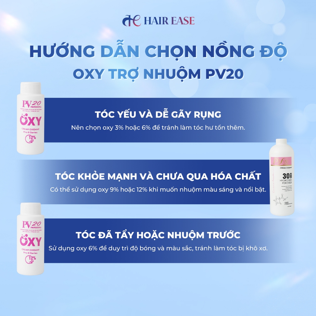 Oxy trợ nhuộm tóc PV20 dung tích 1000ml hỗ trợ tóc lên màu chuẩn và đều màu, dưỡng tóc hư tổn