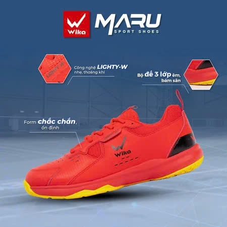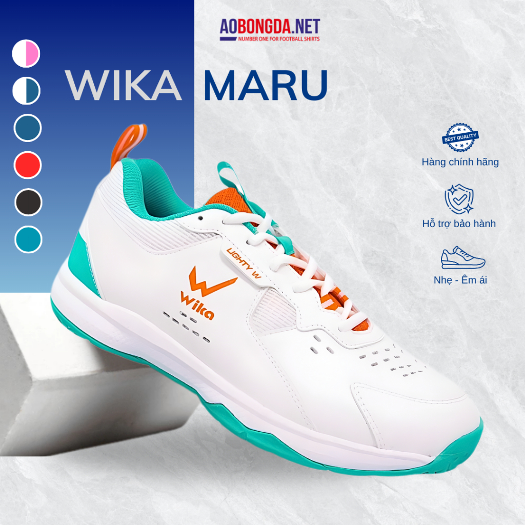 [MR03]Giày Bóng Chuyền, Giày Cầu Lông Wika Maru Nam Nữ Chính Hãng Da Pu Chống Xước, Đệm EVA Êm Ái Tặng Bó Gối +Găng Nắng