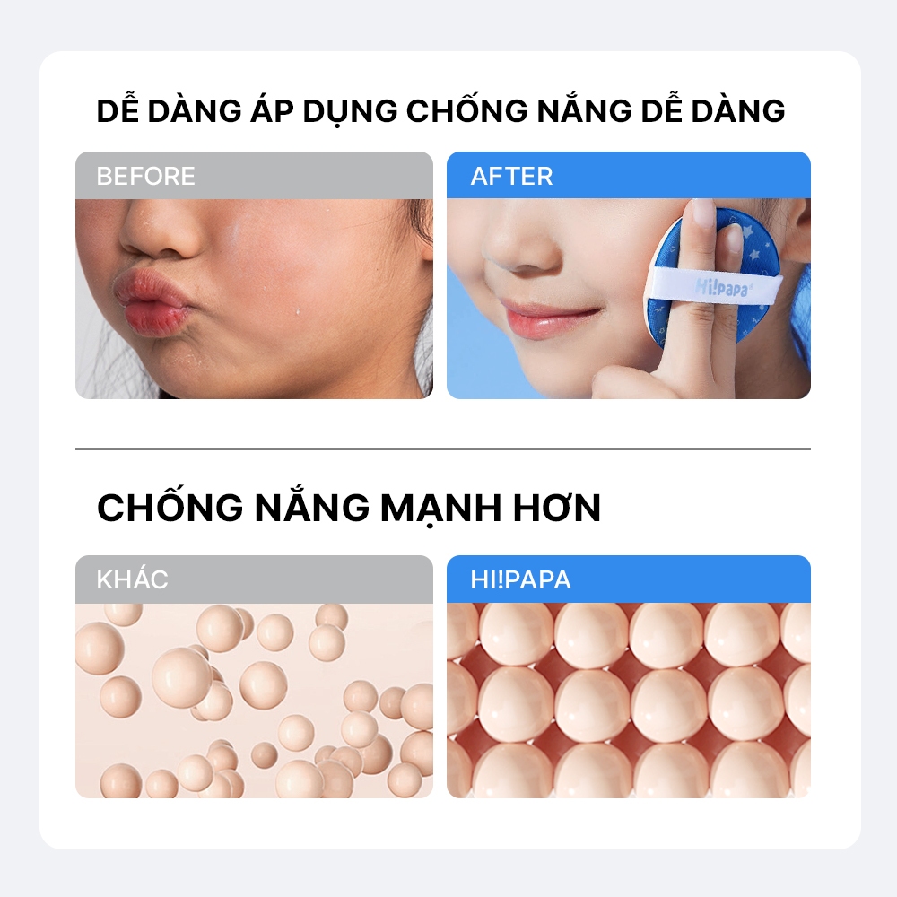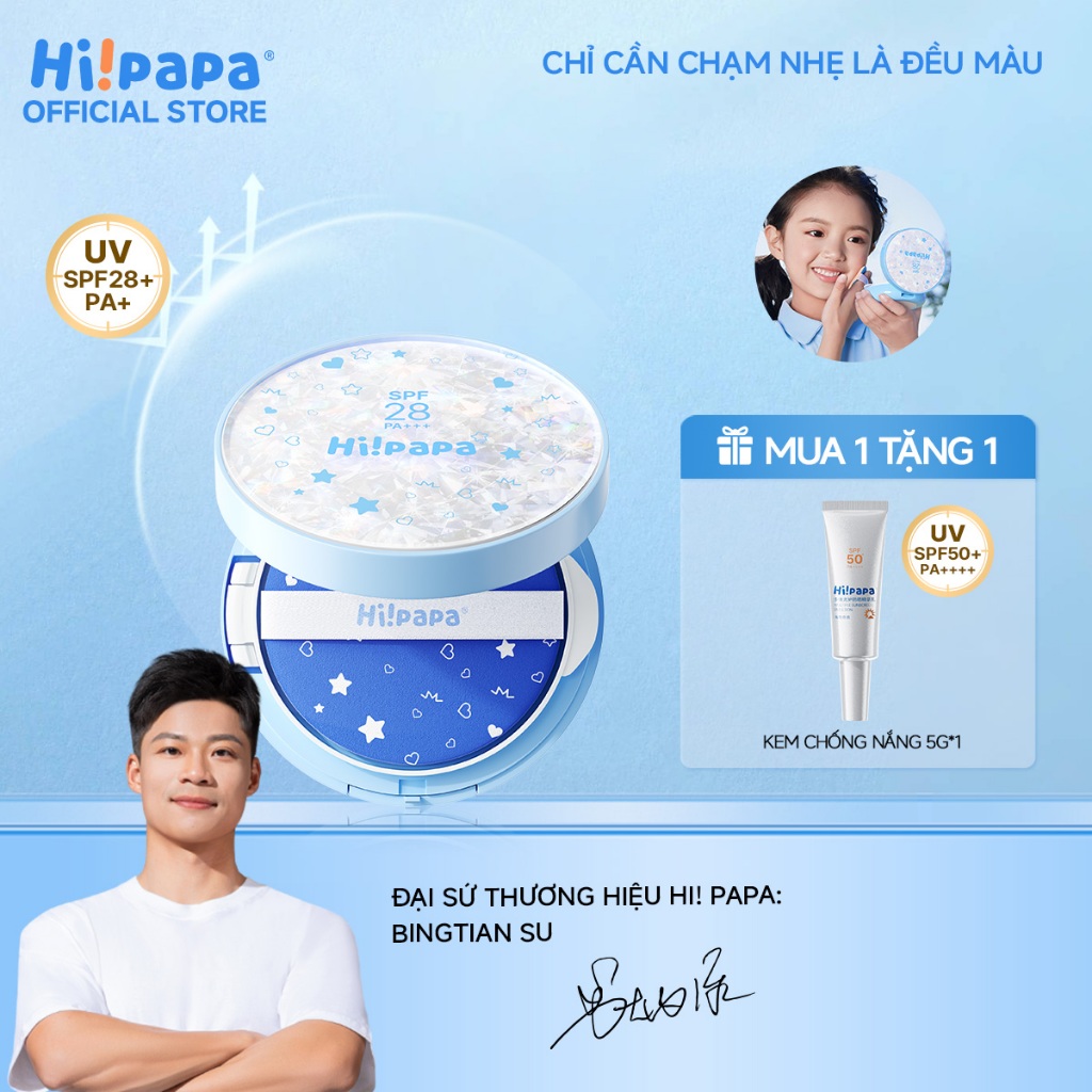 Hi!papa Cushion Chống Nắng Trẻ Em SPF28+ Chống Thấm Nước & Mồ Hôi Che Khuyết Điểm Nhẹ Lên Tone Tự Nhiên Không Cồn