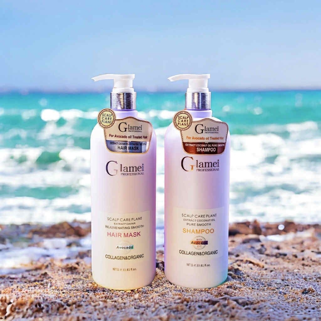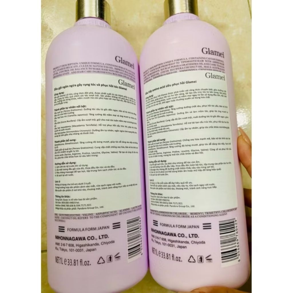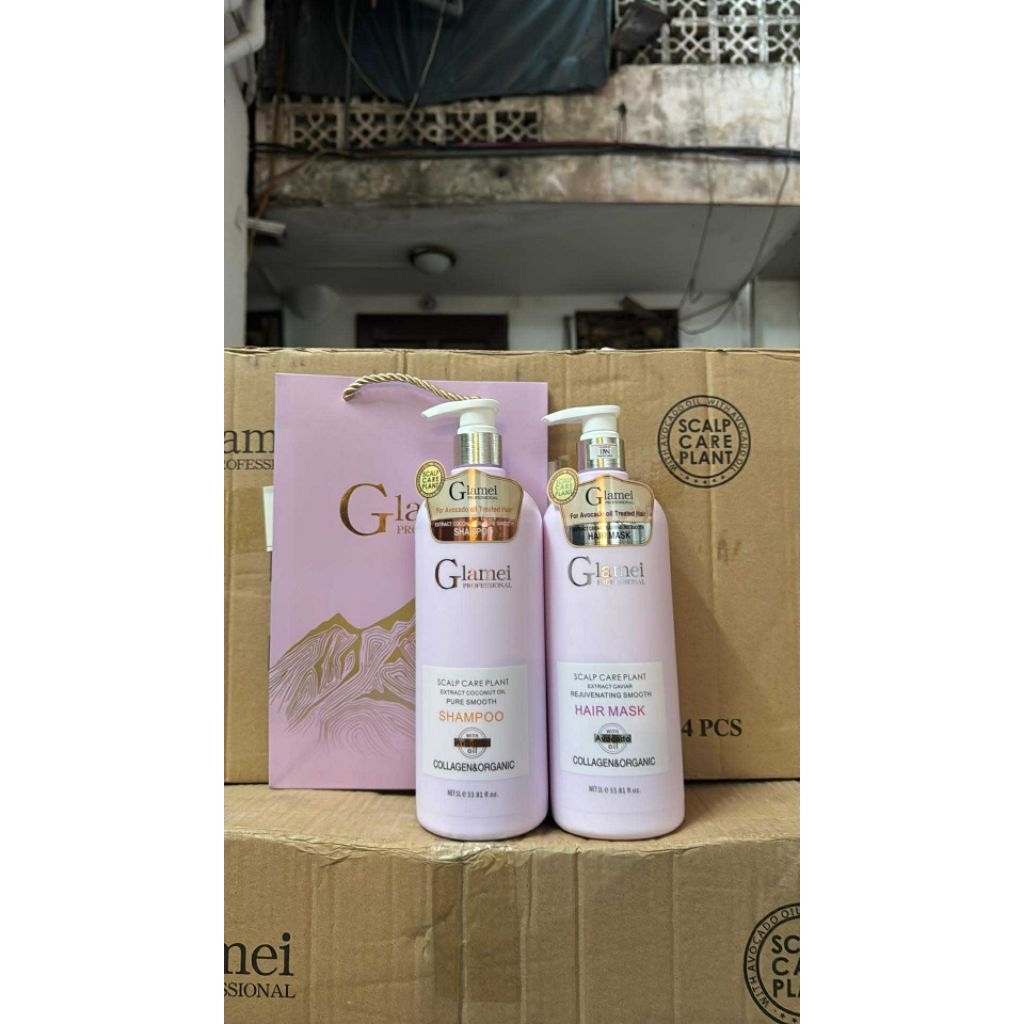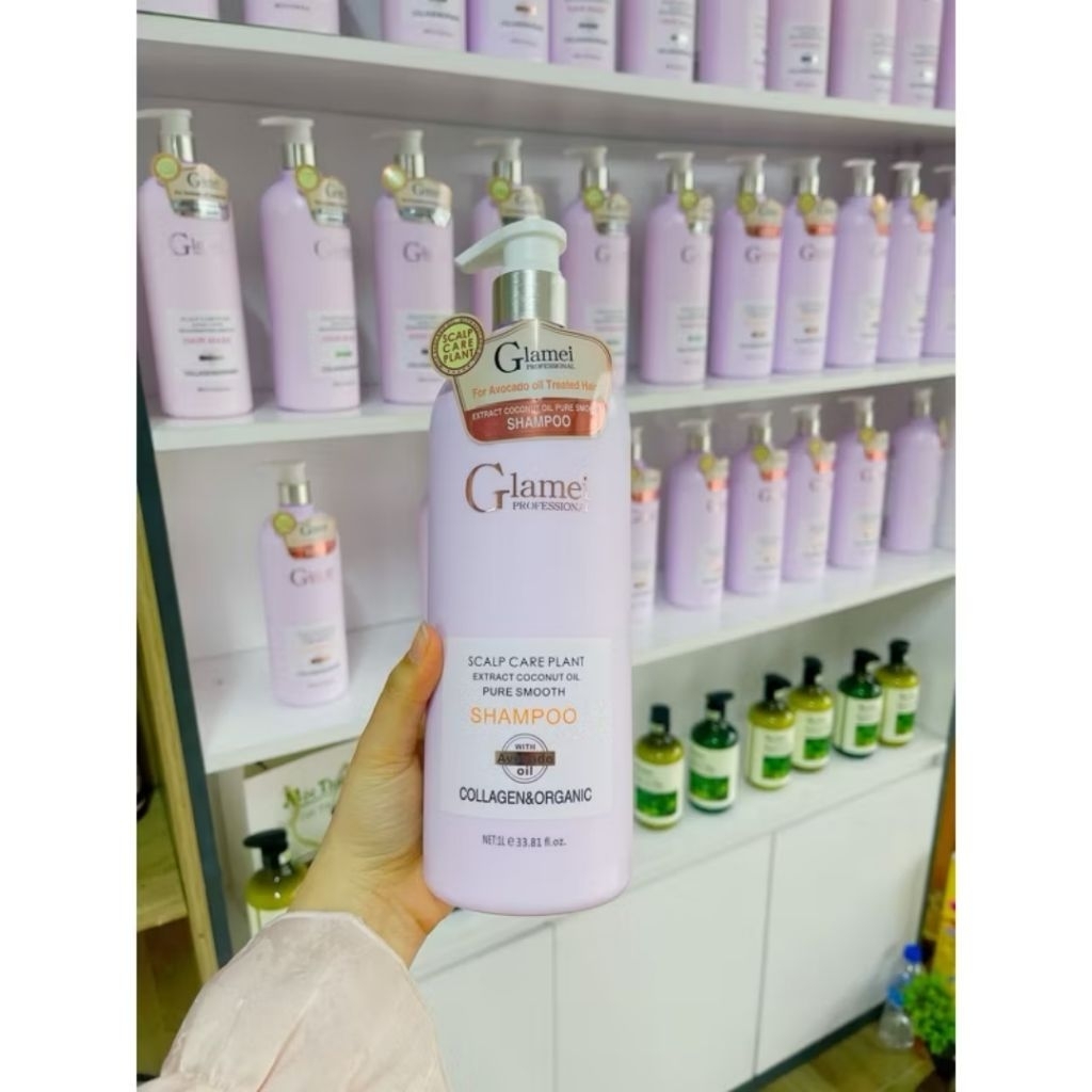 Cặp Dầu Gội Xả GLAMEI 1000ml siêu mượt phục hồi hư tổn