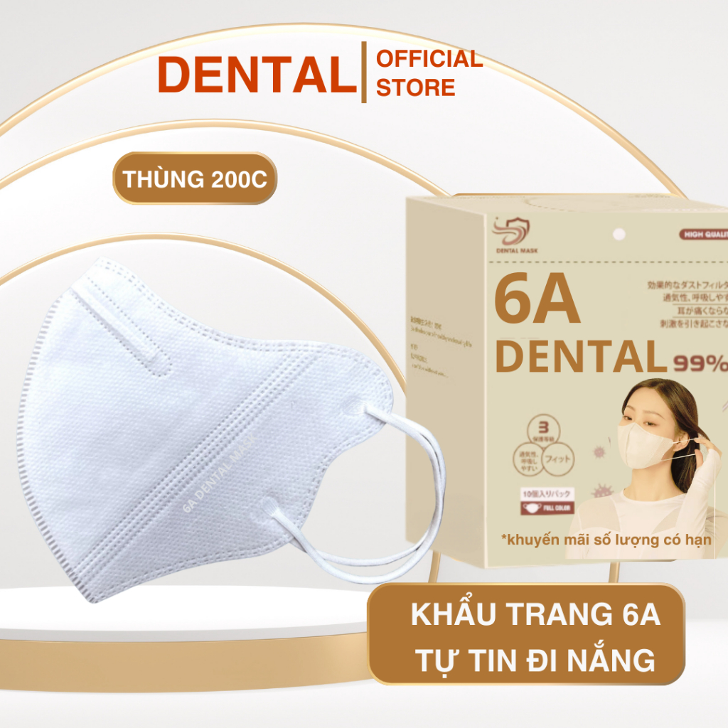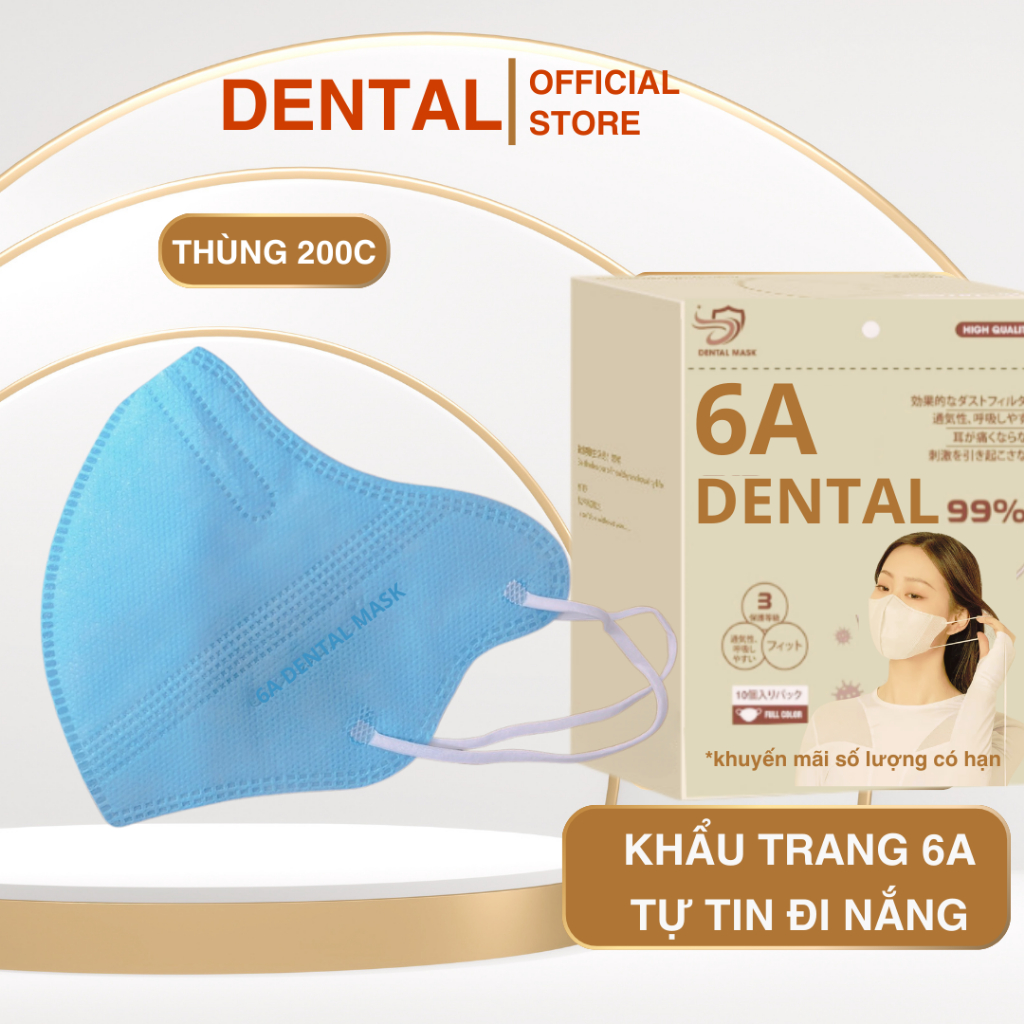 Thùng 200 Chiếc khẩu trang 6A DENTAL mask 4 lớp kháng bụi mịn kháng khuẩn chống tia UV