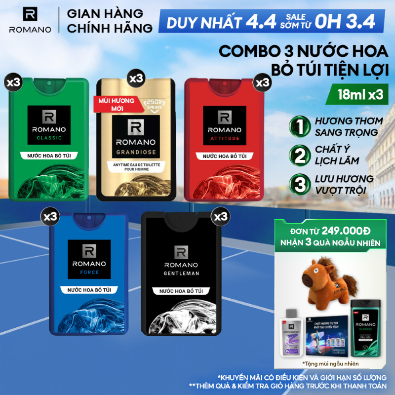 Combo 3 Nước hoa nam bỏ túi Romano 18ml /chai