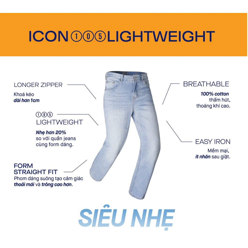 Quần Jean Nam ICON105 Lightweight™ Straight Fit Raw Indigo QJID0239