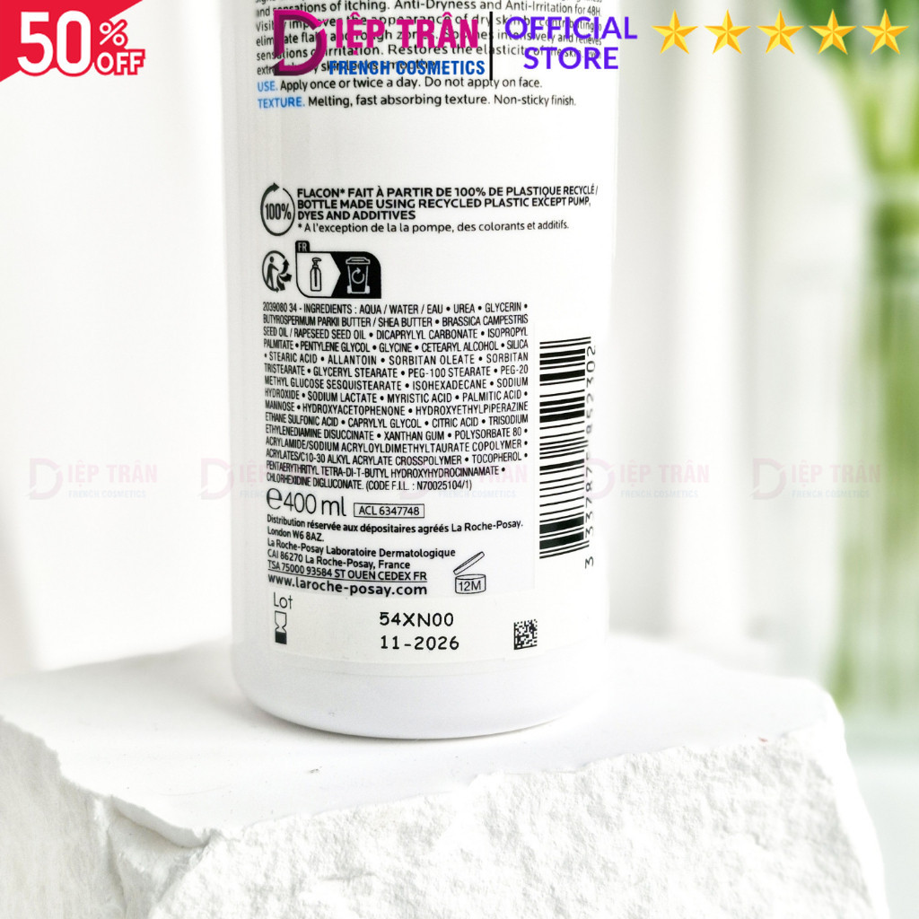 Sữa dưỡng thể La Roche Posay Lipikar Lait Urea 10% 400ml, giảm khô da chỉ sau 1 l ần dùng - SKU290