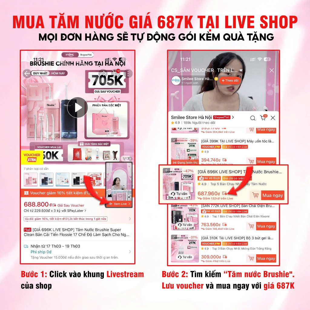 [GIÁ 615K LIVE SHOP] Tăm Nước Brushie Bản Cải Tiến Vệ Sinh Răng Miệng Cho Người Niềng Răng, Flossie Gấp Gọn Du Lịch, LIS
