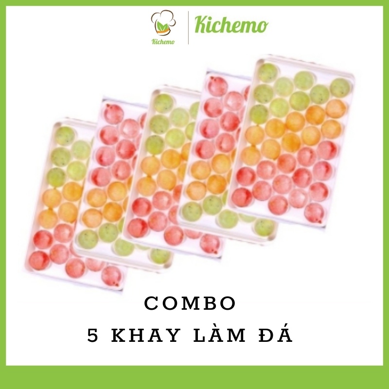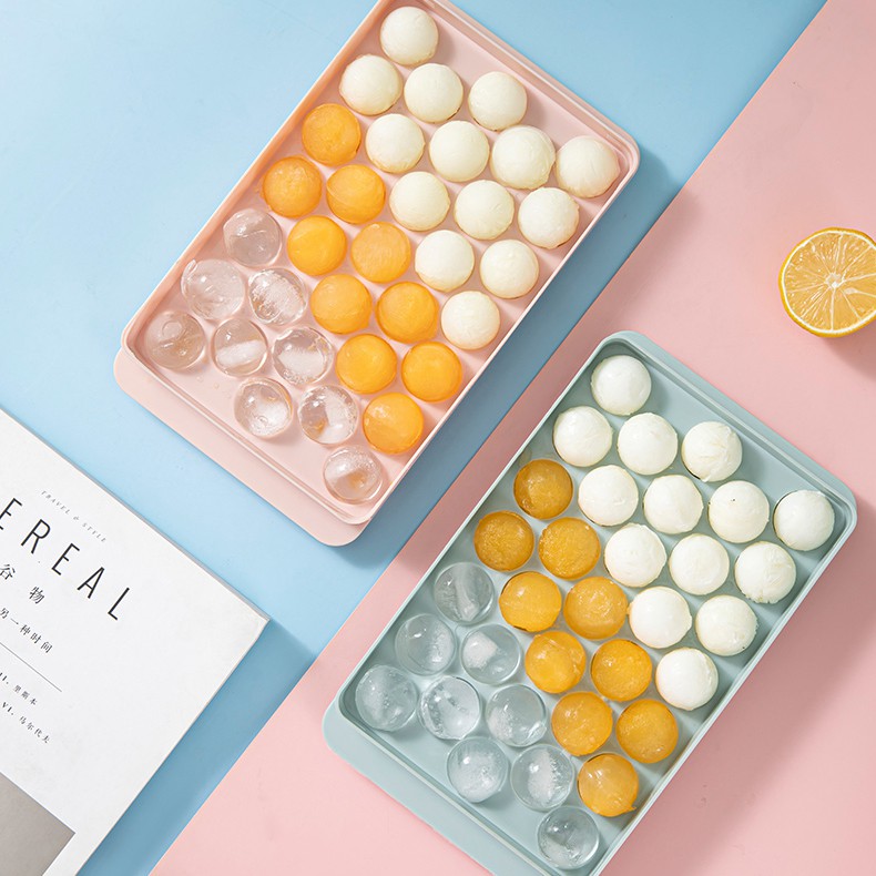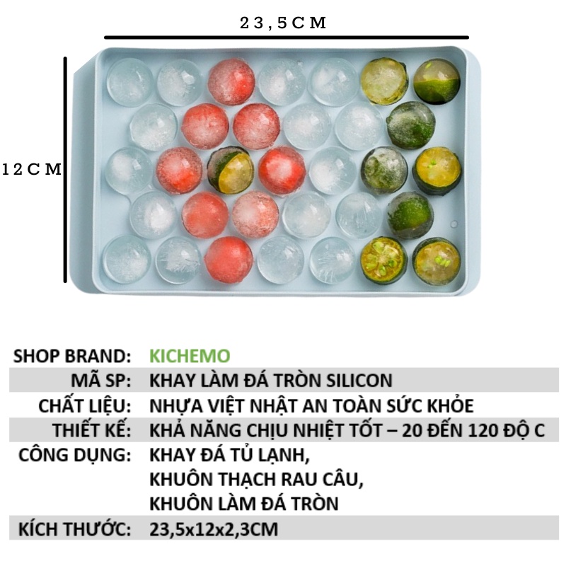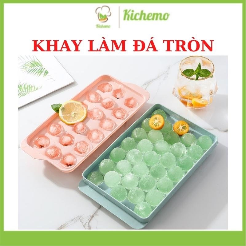 Khay làm đá tròn có nắp đậy Khuôn làm đá tròn đá bi - Kichemo KLD02