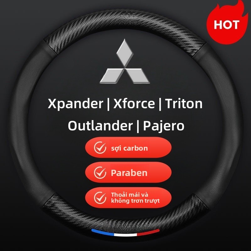 Mitsubishi Bọc vô lăng xpander xforce outlander attrage triton pajero attra jolie lancer atrage da Nappa da Tay lái bằng sợi carbon khí size 38 cm