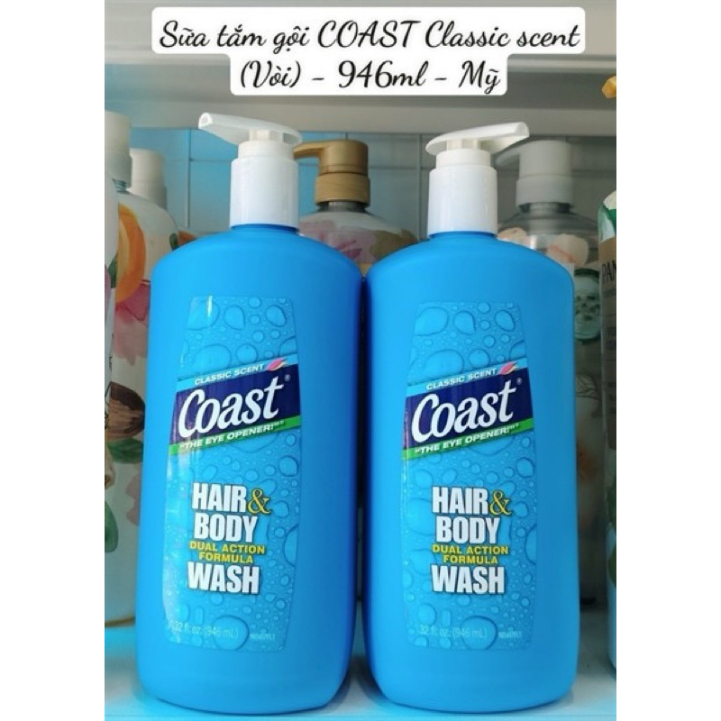 Sữa Tắm Gội Coast Mỹ 2in1 Hair And Body Cho Nam Chai 532ml - 946ml Hàng Nhập Mỹ Làm Sạch Cơ Thể Bụi Bẩn Cung Cấp Độ Ẩm