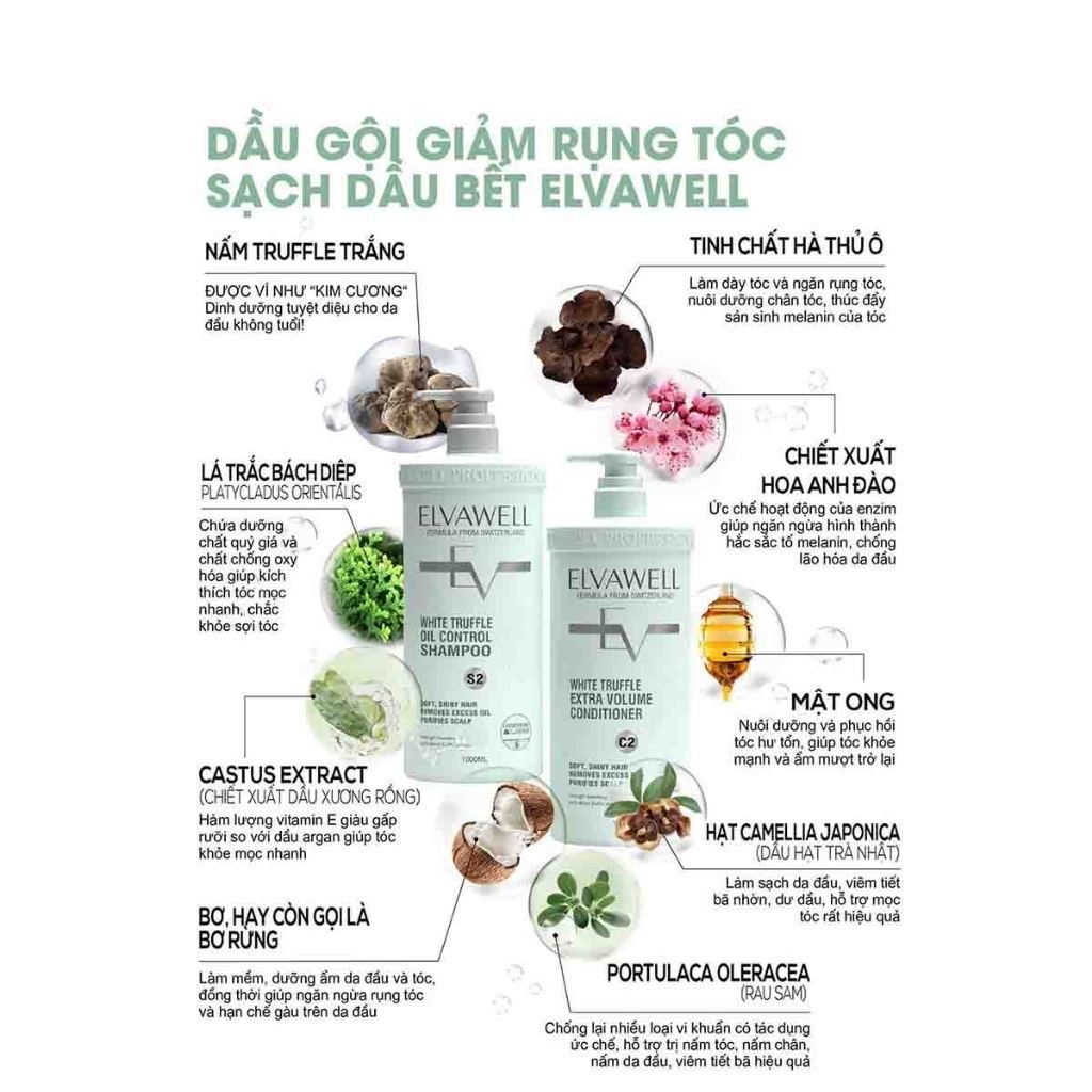Dầu Gội Giảm Rụng Tóc Sạch Dầu Bết ELW Màu Xanh 500ML - 1000ML