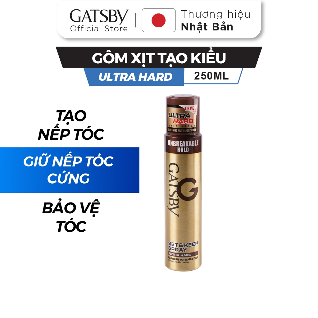 Gôm xịt tóc GATSBY Set & Keep Spray Ultra Hard 250ml